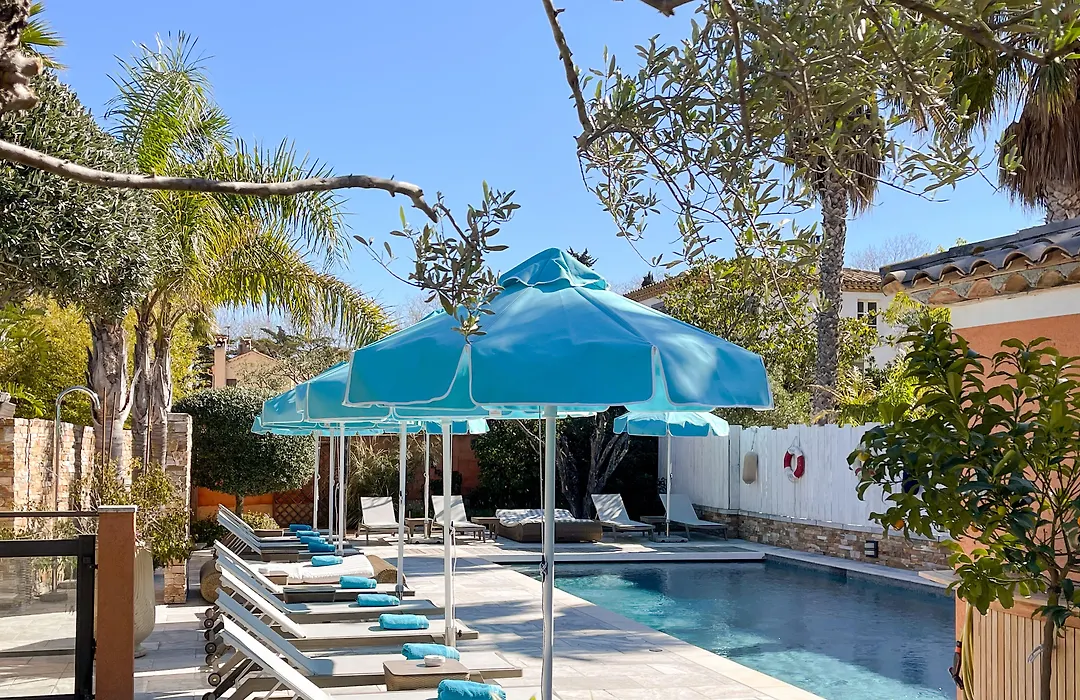 Pour les familles, la voiture reste indispensable : les plages les plus réputées (Pampelonne, Tahiti) se trouvent à environ 6 km du port, et les navettes saisonnières ne couvrent pas tous les horaires. L'enjeu principal est donc de trouver un établissement avec parking gratuit, chambres familiales réelles et piscine, pour ne pas dépendre exclusivement de la plage.